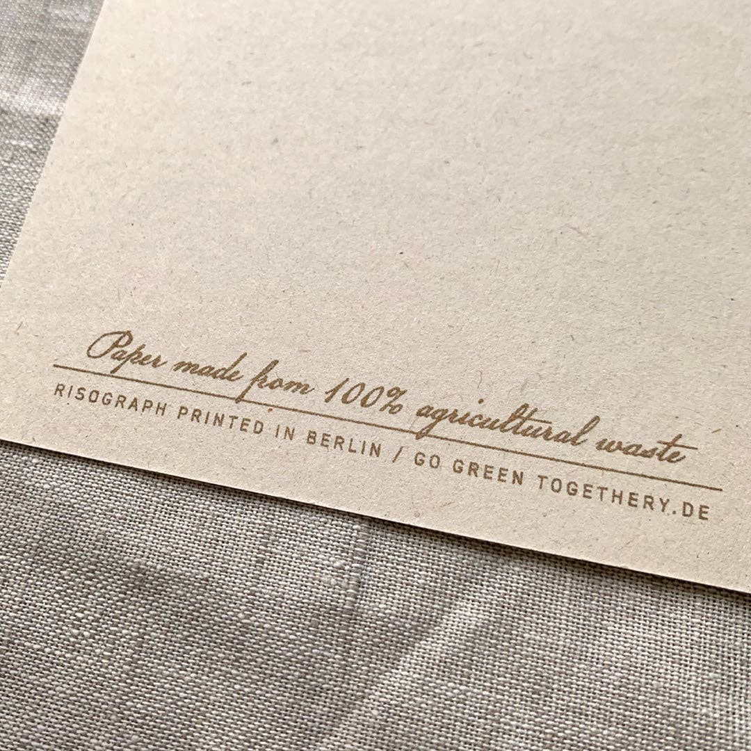 → H E R S T E L L U N G Mit Liebe aus Berlin – wir gestalten und drucken unsere Papierwaren in Berlin-Wilmersdorf Hersteller: Togethery, Bahlmann & Liceni GbR, Trautenaustr. 13, 10717 Berlin, Germany, Kontakt: www.togethery.de